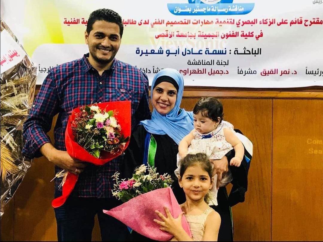 Nesma `Adil Abu Sha`ira (نسمة عادل أبو شعيرة) was an artist and lecturer in the Department of Fine Arts and Graphic Design at al-Aqsa University. In February 2023, eight months before her untimely death, she was appointed Assistant Head of her department.
